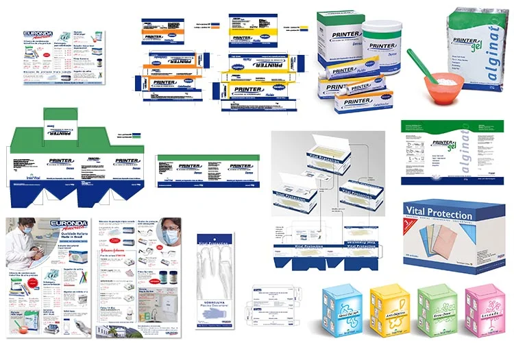 Fabricante de materiais odontológicos descartáveis – Embalagens, folhetos, marcas, anúncios e site